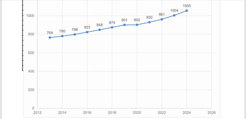 【客観的事実】 2013年に764円だった全国平均の最低賃金は、2024年には1,055円に達しました 。12年間で約38.2%もの上昇です 。恐ろしいのは、これが単なる賃上げに留まらず、社会保険料(法定福利費)の算定基礎も押し上げ、「総額人件費」を強制的に増大させているという点です 。+2